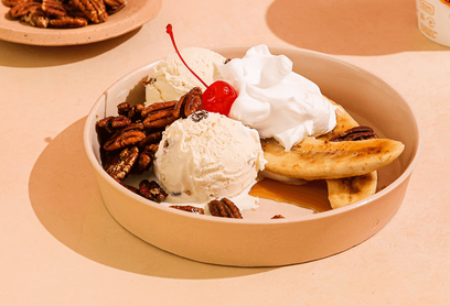 This is a roasted banana and caramel ice cream with bits of toffee throughout. Go ahead and spoil yourself!