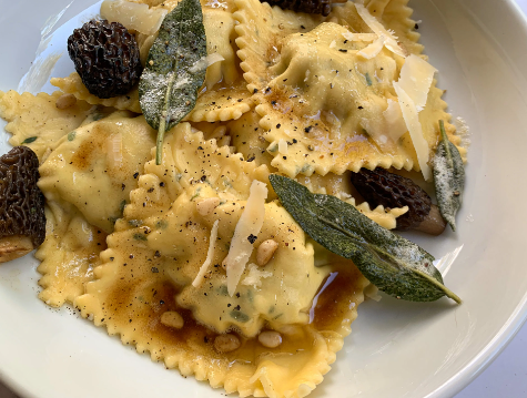 - Place 1 tablespoon of the Filling in the center of each circle. Lift the dough up and over the Filling to create a half-moon shape. With wet fingers, firmly pinch the sides together in the same way as when pinching pie dough together. Go around the edge a second time to create a good seal. You may press the edge with fork tines for