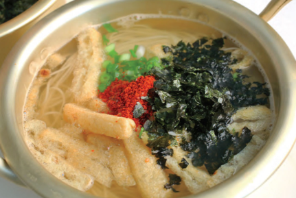 When I go to a Korean restaurant with American friends, chances are good that they will want to start with fried dumplings. The filling for these dumplings is so tasty: a mixture of pork, mung bean sprouts, zucchini, chives, onion, and tofu seasoned with sesame oil and a hint of ginger. You can find a variety of premade dumplings in Korean grocery stores, but homemade ones always taste better. If you make them yourself, you can be generous with the filling. You can also save some money. (Fifty dumpling skins cost less than $2.) Fifty dumplings may seem like a lot, but once you form them, you can freeze them and then fry or steam them anytime for a quick snack or lunch. To steam them, bring a few inches of water to a boil in a pot fitted with a steamer basket. Steam the dumplings, covered, until they are cooked through, about 10 minutes. You can also add them to soup; stir them into the simmering broth and cook for 10 minutes or so. See the photos.