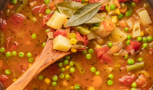 - Heat the ghee in a Dutch oven or soup pot over medium-high heat. Add the bell pepper and onions and cook, stirring often, until the onions are translucent, about 5 minutes. Add the garlic and cook for 1 more minute.